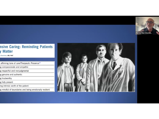 „Dignity, Personhood and Intensive Caring: Critical Concepts in Palliative Care“ von Dr. Harvey Max Chochinov auf Zoom statt.